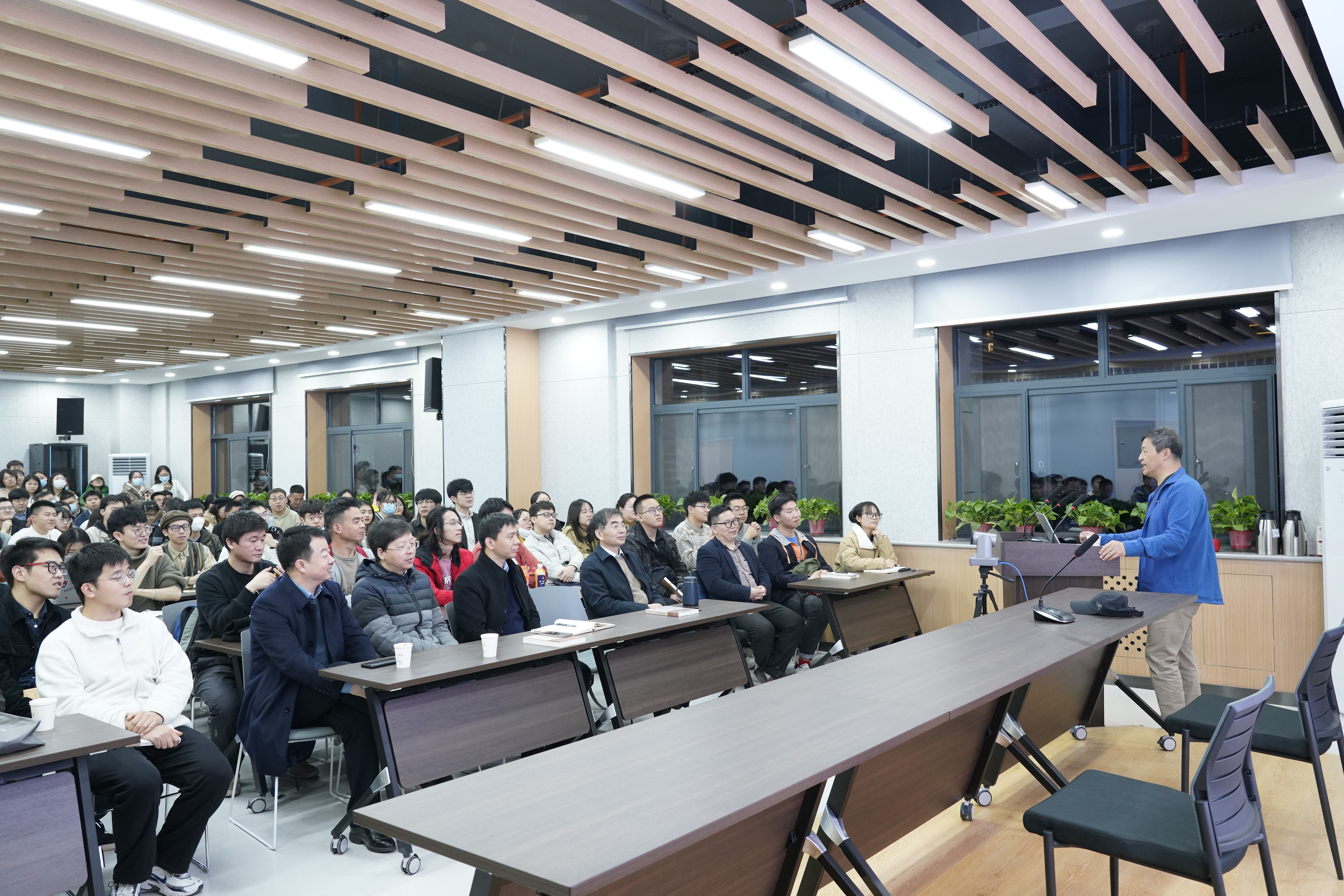 辛教授从余嘉锡先生指出《满江红》词为后世伪造说起,对邓广铭先生的反驳、张政烺先生进一步引申余嘉锡论点的情况作了详细梳理,分析了各自论据及论证过程。辛德勇教授认同余嘉锡、张政烺先生的后世伪造说,而对邓先生的真品说持怀疑态度。辛教授认为,邓先生所认可的文献流传的一般规律不适用分析名气甚大的岳飞《满江红》。进而,辛教授从邓先生的思维路径(个人情怀)与史实论证(赵与时《宾退录》刊布年代问题)两方面加以分析,对邓先生的观点提出质疑。接下来,辛教授指出,根据“贺兰”意象在宋金元明的使用情况,《满江红》几无可能创作于南宋初年。最后,辛教授细致梳理了《满江红》词作从元杂剧到汤阴岳飞庙碑的流传线索,指明其来历。在演讲过程中,辛教授严谨求实又不失风趣幽默。讲座结束后,辛教授与在场师生积极互动,就史学研究方法、史学训练、人工智能的挑战等问题作了精彩解答。