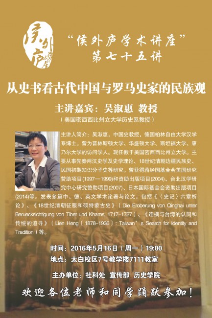 “侯外庐学术讲座”第七十五讲—“从史书看古代中国与罗马史家的民族观”